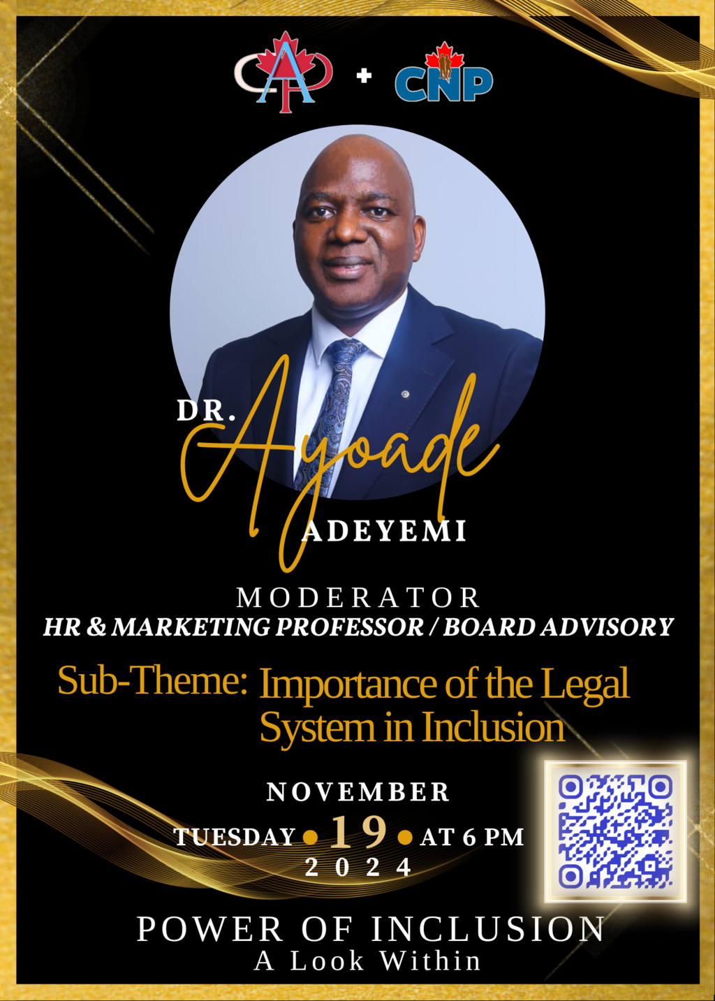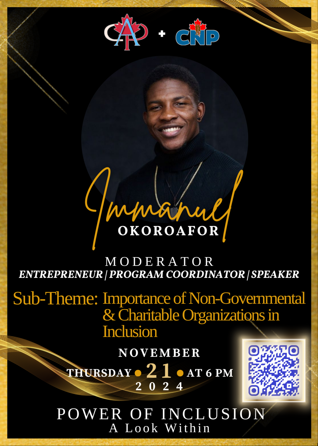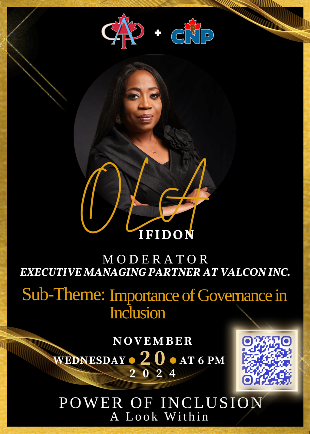 As President of the Council of Nigerian Professionals (CNP), I am honored to invite you to participate in the Power of Inclusion (POI) series, themed for 2024 as "A Look Within." This year's theme reflects the vital importance of self-reflection and personal responsibility in building a more inclusive society. At POI, we come together to foster understanding, empathy, and collaboration among diverse cultures and backgrounds.
